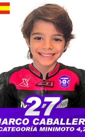 Marco Antonio Caballero es un piloto español que debuta en la temporada 2025 en la categoría Minimoto. Con una gran pasión por el motociclismo y una fuerte determinación, Marco llega al campeonato con el objetivo de demostrar su talento y enfrentar los retos que ofrece esta competitiva categoría.