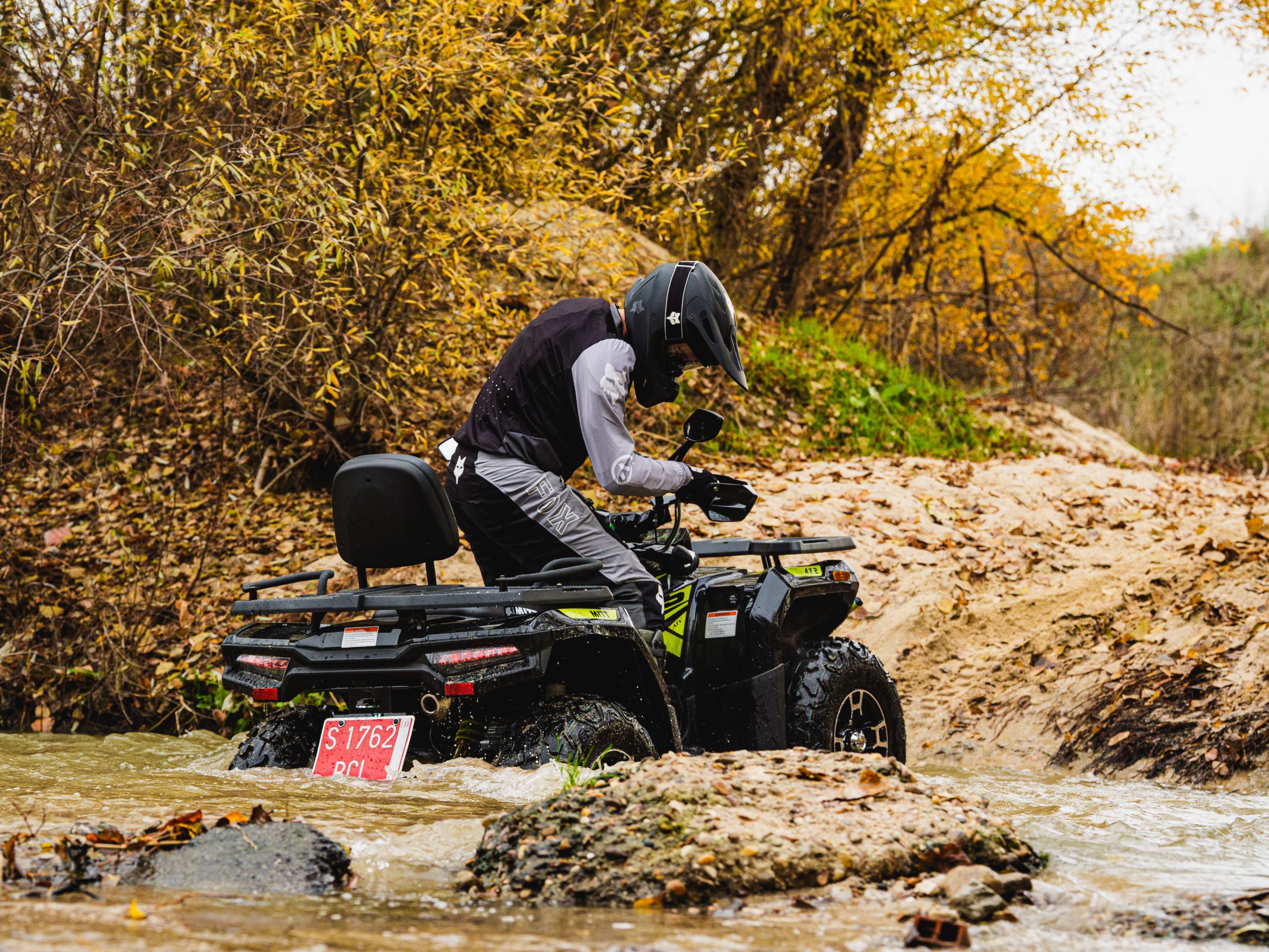 El equipamiento de serie es uno de sus grandes puntos fuertes: iluminación full LED delantera y trasera, cuadro digital LCD completo (con velocímetro en km/h o mph, cuentarrevoluciones, odómetro, indicador de marcha F-N-R, nivel de gasolina, reloj y más), puertos USB tipo A y toma de 12V, parrillas y defensas delantera y trasera, respaldo con asideros para el pasajero, y bola de remolque trasera con enganche delantero.