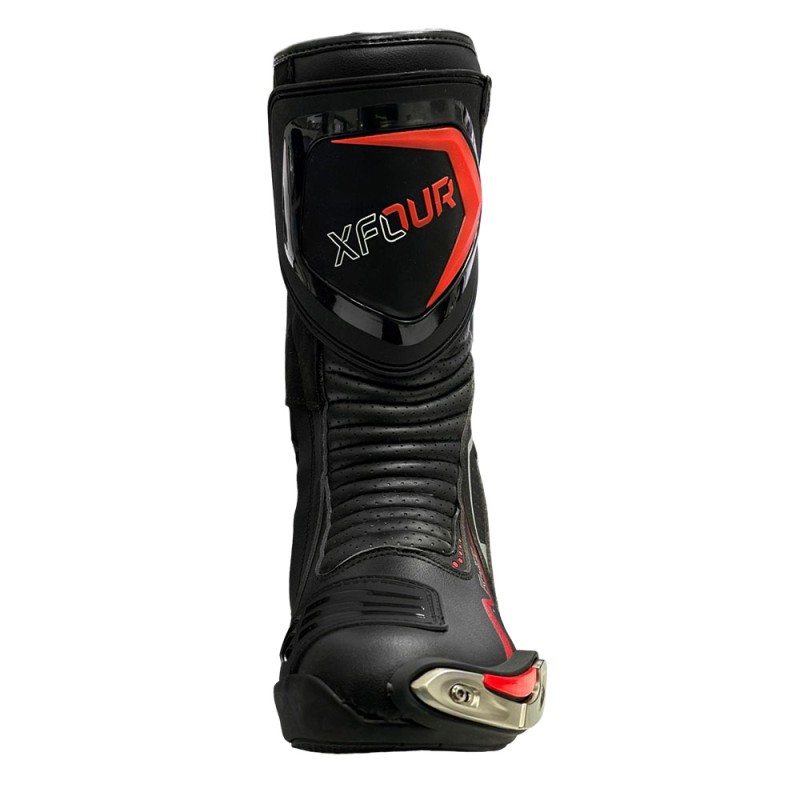 Las botas de moto XFOUR Racing en negro y rojo están diseñadas para ofrecer un alto rendimiento para los pilotos que buscan protección, control y un diseño agresivo. Con una estructura reforzada y materiales de última generación, son la elección ideal para los que exigen máxima seguridad y confort en cada curva.