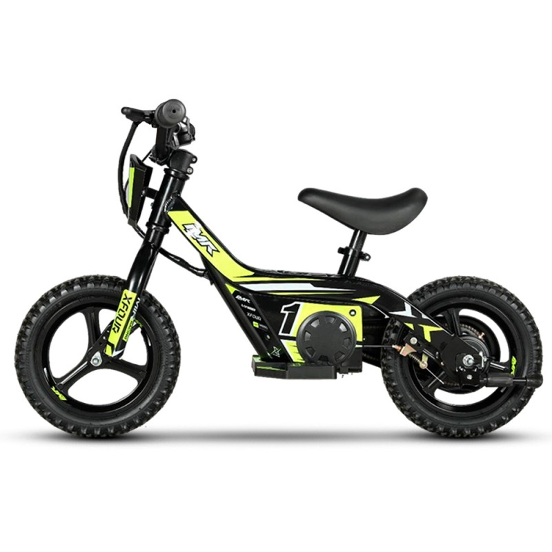 ¡Espectacular! La bici eléctrica de moda entre los más peques! Disfruta de su potencia de 100w y su batería de Litio 24V. Velocidad máxima de 12 a 15km/h y autonomía de entre 10km y 15km. Llantas de 12 pulgadas mini y cómodo encendido eléctrico por boton. ¡Tiempo de carga entre 1 o 2 horas! Freno trasero mecánico y altura del asiento al suelo de 40 a 50cm (regulable) ¡Edad recomendada entre 3 y 5 años! Envío GRATIS en solo 24/72h a toda la península! ¡Aprovecha esta oportunidad única!
