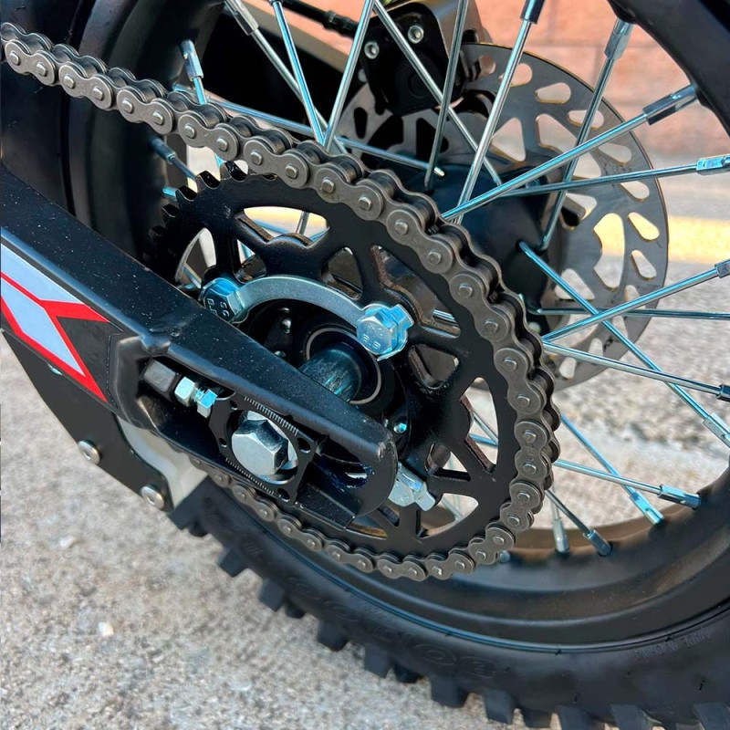 Espectacular pitbike cross equipada con motor 125cc YX, refrigerado por aire y arranque por patada, asegurando rendimiento en cualquier terreno. Equipada con cambio semiautomático de 4 marchas semiautomático, chasis de acero con cuna de doble tubo, y llantas de aluminio de 14 y 12 pulgadas. Esta moto destaca por su agilidad y durabilidad. Además, cuenta con una suspensión delantera de horquilla hidráulica invertida para un manejo suave y estable. Envío gratuito a toda la península con entrega rápida en 24/72 horas.