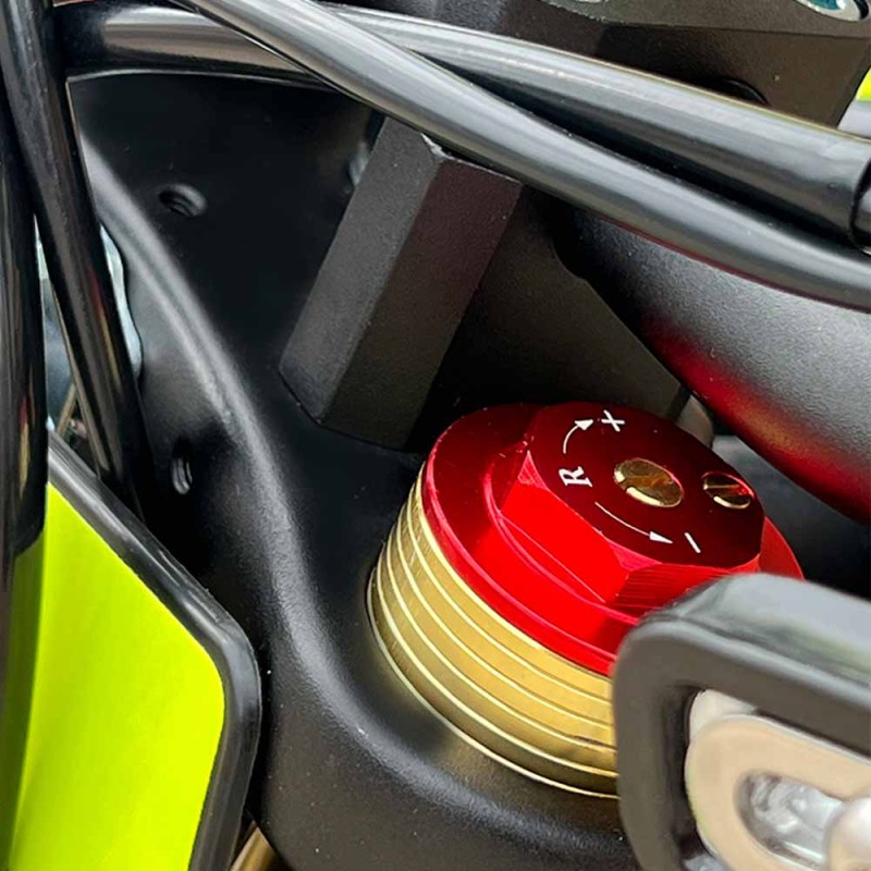 - Amortiguación trasera: Regulable y adaptable a 4 posiciones diferentes. Modelo DNM ajustable
