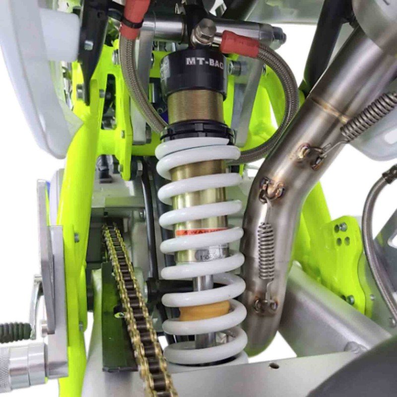 MOTO ARTESANA .SOBRE PEDIDO. ¡Brutal! La Pit Bike que esperabas ya está aquí. Disfruta su motor de 4 tiempos y 190cc con potencia de 20cv. Equipada con chasis tubular de Cromo Molibdeno y basculante de aluminio desarrollado con sistema de bieletas. ¡Su estabilidad en el paso por curva es increíble! Horquillas MIR Racing regulables en comprensión y extensión, tijas modelo MIR Racing de CNC y amortiguación trasera DNM. Freno delantero (bomba y pinza) modelo Fórmula con disco flotante MIR Racing de 220mm. Freno trasero con disco MIR Racing de 180mm. Llantas ULTRALIGERAS de 12 pulgadas color negro. Altura del suelo al asiento de 750mm. ¡Garantía de 2 años!