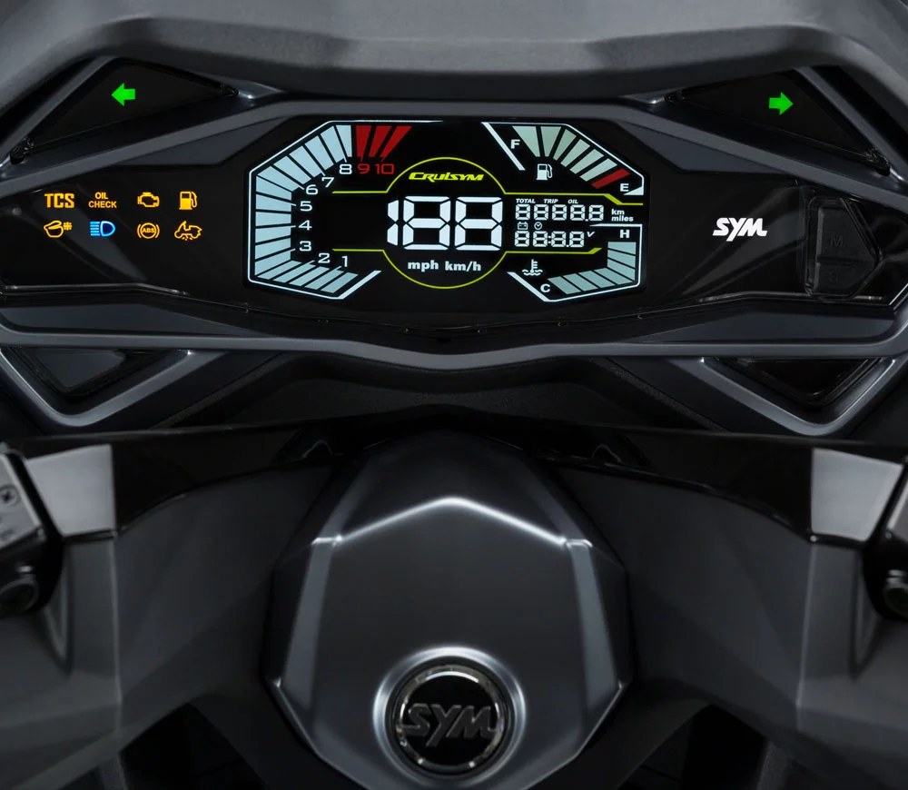 El Cruisym Alpha destaca por su diseño de estilo deportivo, marcado por líneas angulosas y afiladas, y por un cuidado acabado en todos sus detalles.
